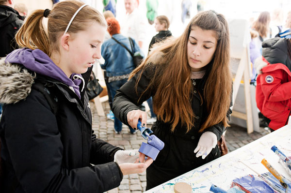 Malerne havde en masse æsker med, som de besøgende fik mulighed for at male og lave kreative dekorationer på - og især den hjerteformede æske var i høj kurs.